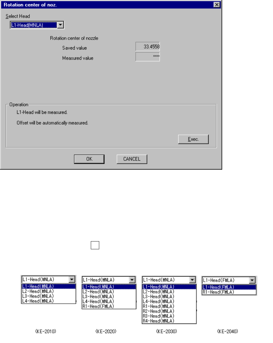 11 − 8 11.4 Rotation Center of the Nozzle W hen you select the [Set-up g roup] com mand on the m enu bar , t hen the [Rotation center of noz] command on t he displayed menu, the f ollowing “Rotation center of noz.” dialo…