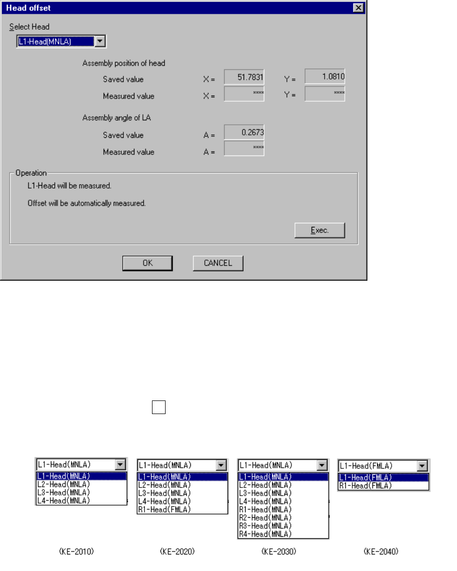 offset] command on the displayed menu, the following the “Head offset” dialog box