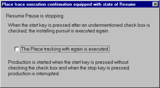 1.6 “Place trace execution confirmation equipped with state of Resume” dialog box