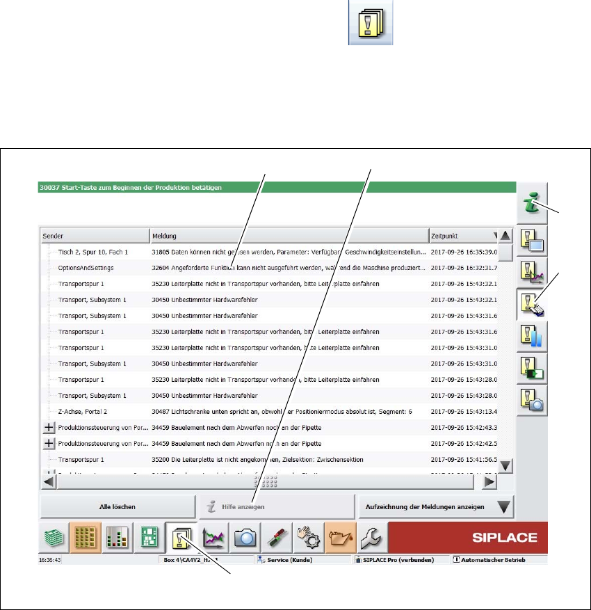5 Aufgaben am Bestückautomat Betriebsanleitung SIPLACE CA4 V2 5.6 Alarminformationen Ab Softwareversion 713.0 Ausgabe 12/2019 212 5.6.2 A larmmeldungen ohne det a illiertem Fehlerhandling Um Informa tionen zu allgemei ne…