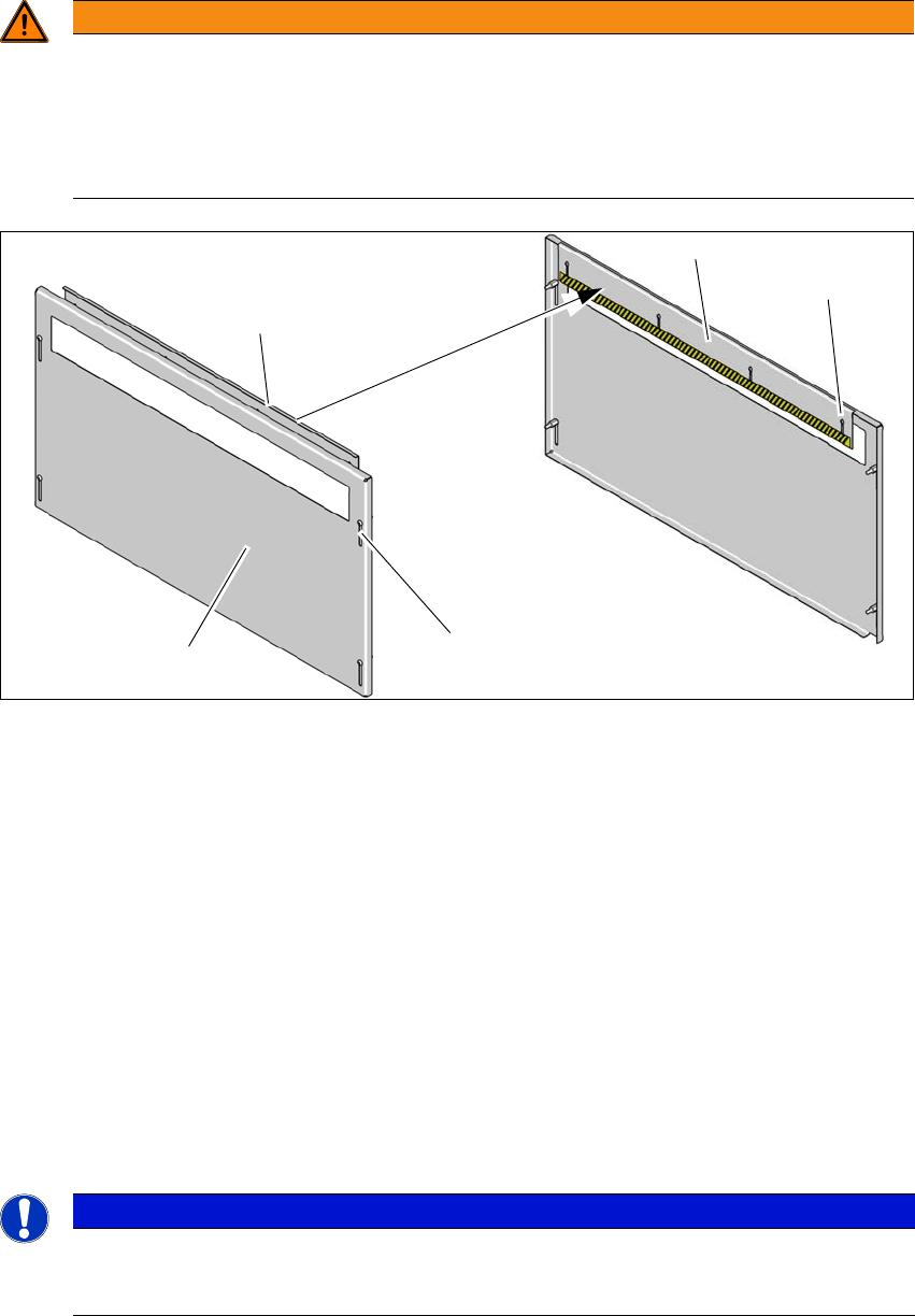 Stellen Sie mit Hilfe der Langlöcher (4) die Höhe am inneren Blech so ein, dass je nach Pro-
