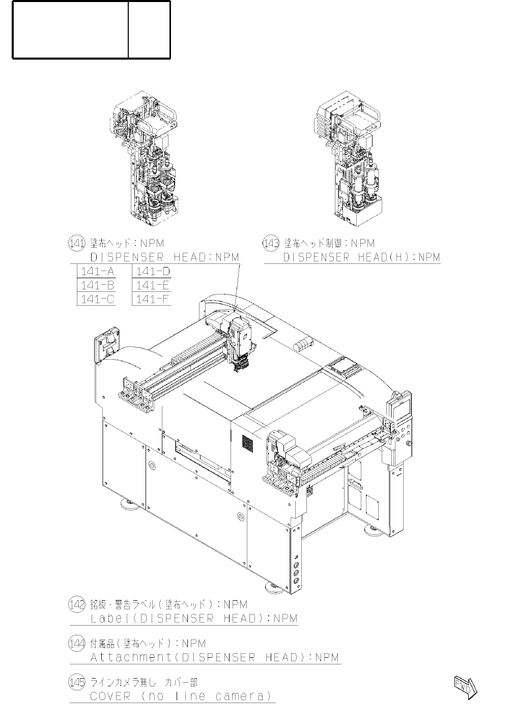 Kit Name Rank Q'ty 番号 Pa rt N o . キット名 品番 数量 ランク 頁 Pa ge No. 35 キットリスト KIT LIST 1 141 N610157748AA DI SPENSER HEAD :NPM 塗布ヘッド:NPM O451 1 142 N610158086AA L ABEL( DISPENSER HEAD) :NPM 銘板・警告ラベル(塗布ヘッド ):NPM O463 1 143 …