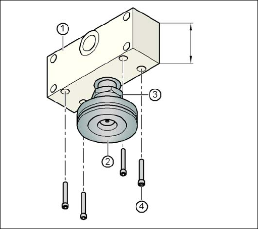 Fasten each of the two spacers with four hexagon socket-head screws M12x80 (see item 4