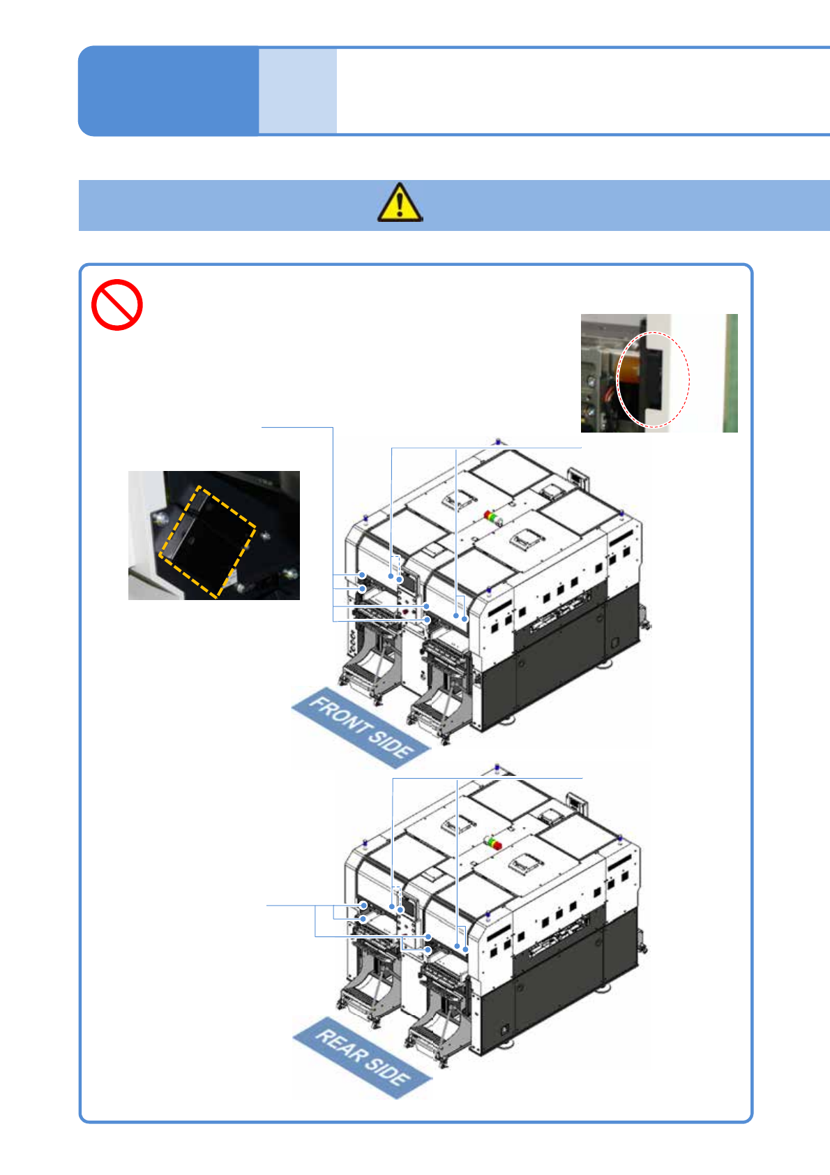 EJM8DC-SF-01C-0 1 NPM-DX 身体部位需要进入可动部时,必须遵守以下事项 ( 有发生触电或者由于可动部运转而造成受伤的可能 ) 请根据各操作内容进行对应。 ●对电气 BOX 等进行维修保养 时 → 把连接设备的工厂侧的断路器设定为 OFF 。 ● 定期检查和更换消磨零件、传感器等电气元件、 贴装头单元等情况时, → 主电源开关设定为 OFF ,并且上锁。 ● 机种切换时,日常检查时,在吸嘴交换器安装 吸嘴时,在传送带…