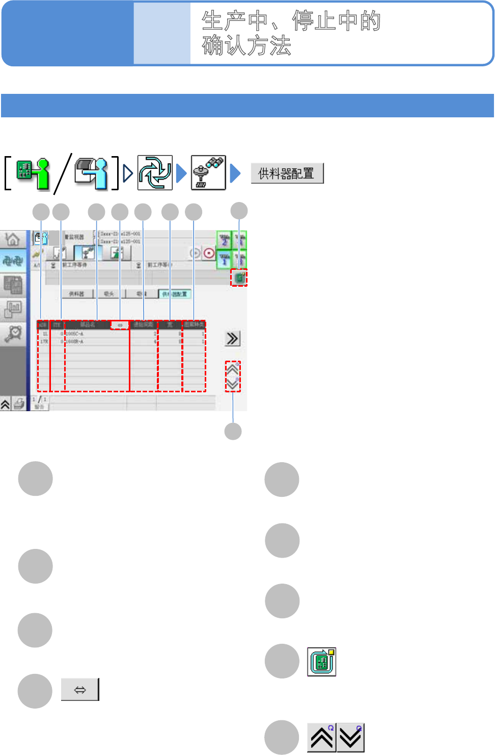 NPM - DX EJM8D C - MB - 04O - 00 4-2-1 - 12 ● ● ● ● ● F G H I J K L M N H F K I J G N M L H F K I J G N M L E E E ■设备单位 TB L ( 工作台 ) 所参照的工作台。 吸着次数 错误数 错误率 倾向 通过图标显示错 误率的增减倾 向。 ■生产线单位 位置 所选择的工作台 侧的吸嘴交换 器内的 吸嘴位置。 吸嘴号 MC ( …