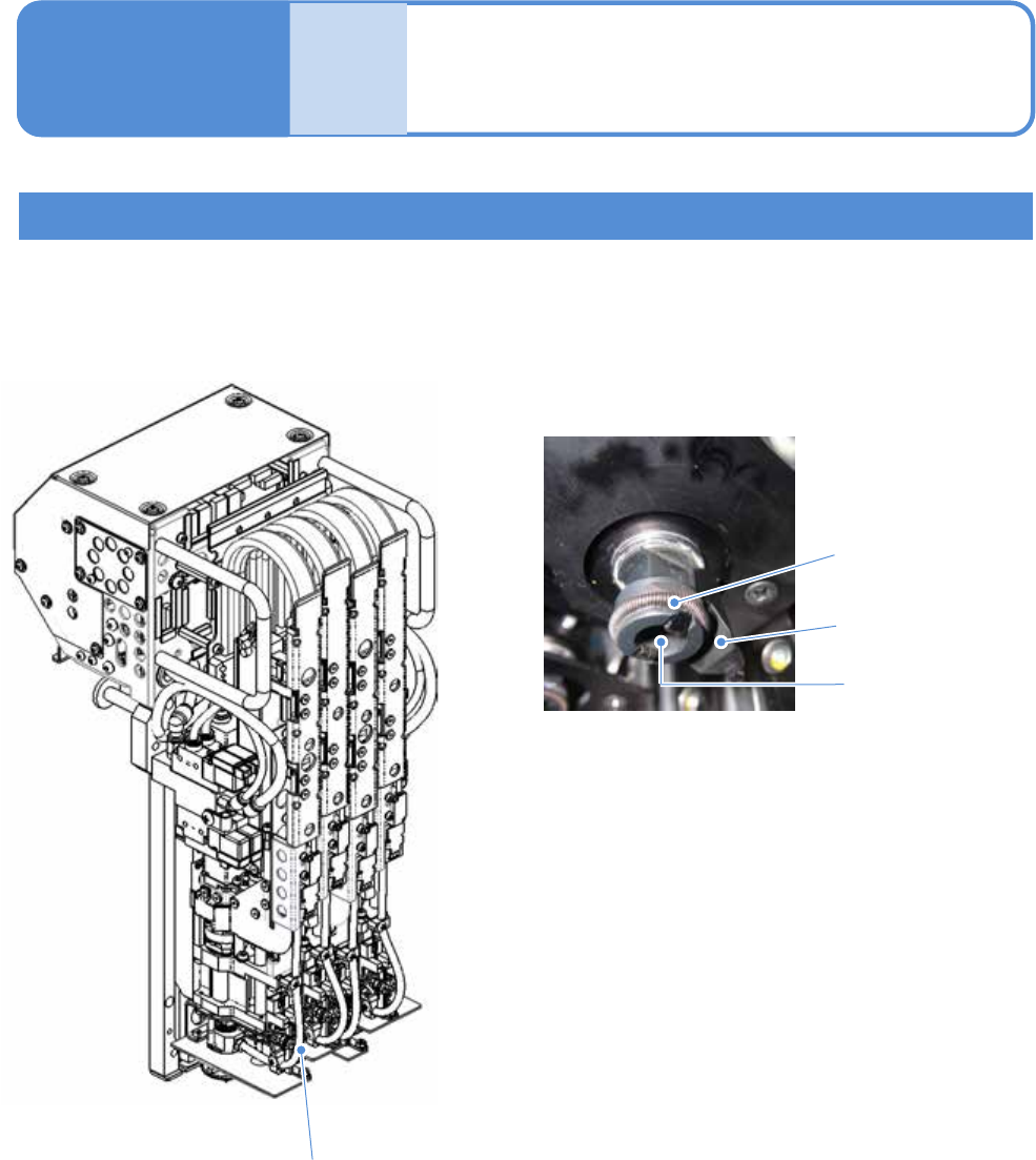EJM80DC - MB - 05O - 00 NPM - DX 5-5 -4 各单元定期检查部位 3 < 贴装头 > ( 选购件 ) 操作 手册 5 - 5 4 吸嘴贴装头 ■ 4 吸嘴贴装头 ■ 吸嘴座 真空空气路径 ( 管子 ) 夹具夹扣 夹具夹扣压紧用 弹簧 锥形面