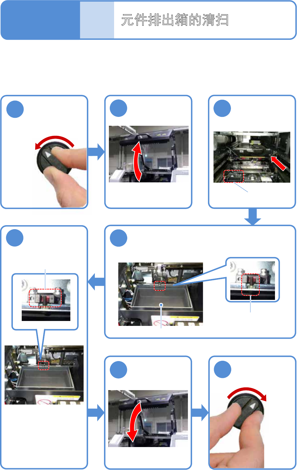 ●生产过程中在排出箱装满之前请清扫元件排出箱。