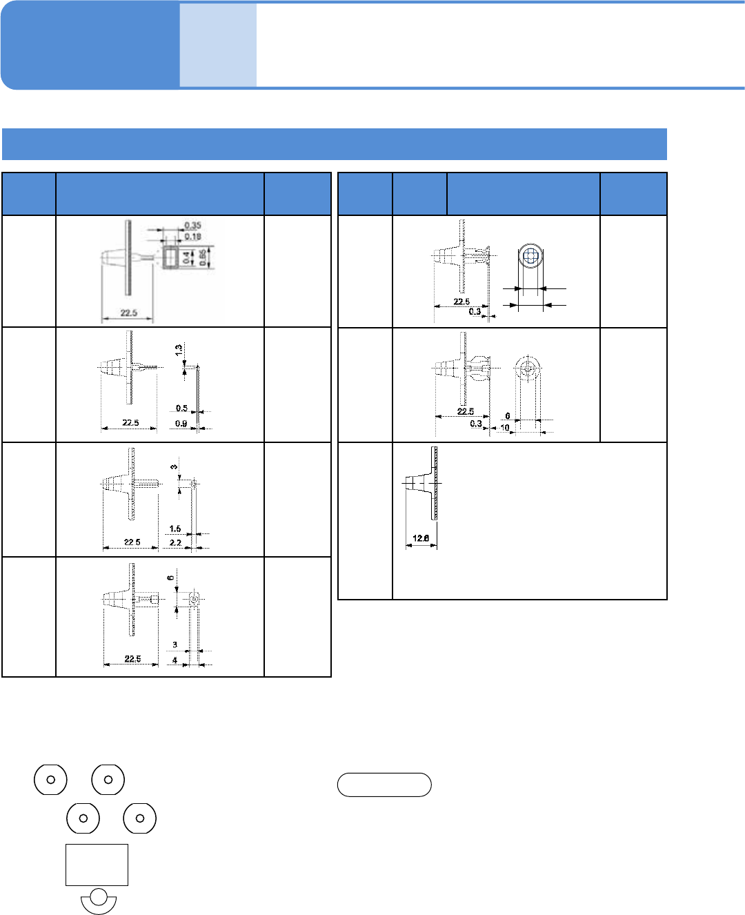 轻量8吸嘴头能吸着的元件尺寸如以下所示。(●: 可吸着、○: 不可吸着)