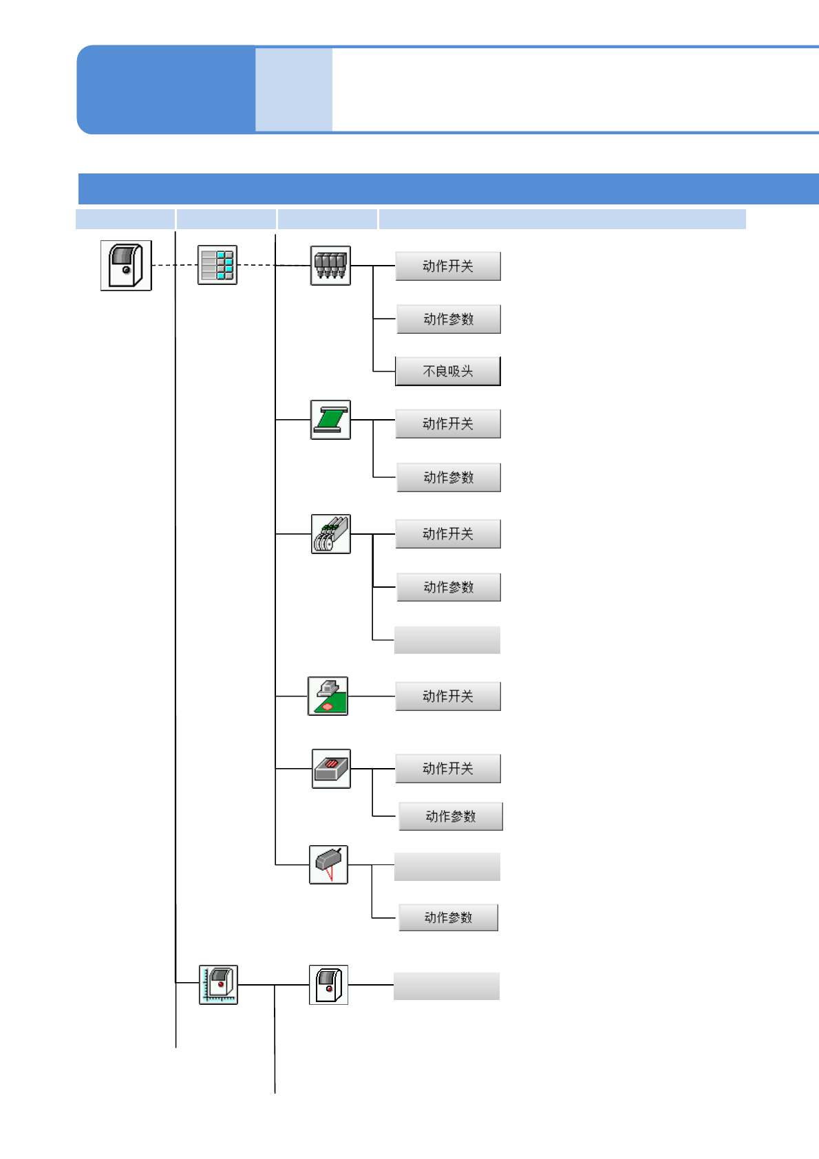 EJM8DC-MB-02C-0 1 第 1 阶层 第 2 阶层 第 3 阶层 第 4 阶层 NPM-DX 2-2-2 -9 工程师模式 5 各部位 名称 菜单构成 5 2-2-2 设定选项功能。 贴装头 设定贴装头上下动作的参数。 进行不良贴装头的状况确认和设定。 传送带 设定传送带的选项功能。 设定参数。 设定传送带的选项功能。 设定参数。 供料器 设定选项功能。 贴装头照相机 ★ 设定参数。 ★ 设定选项功能 。 ★ 高度 传感器 …