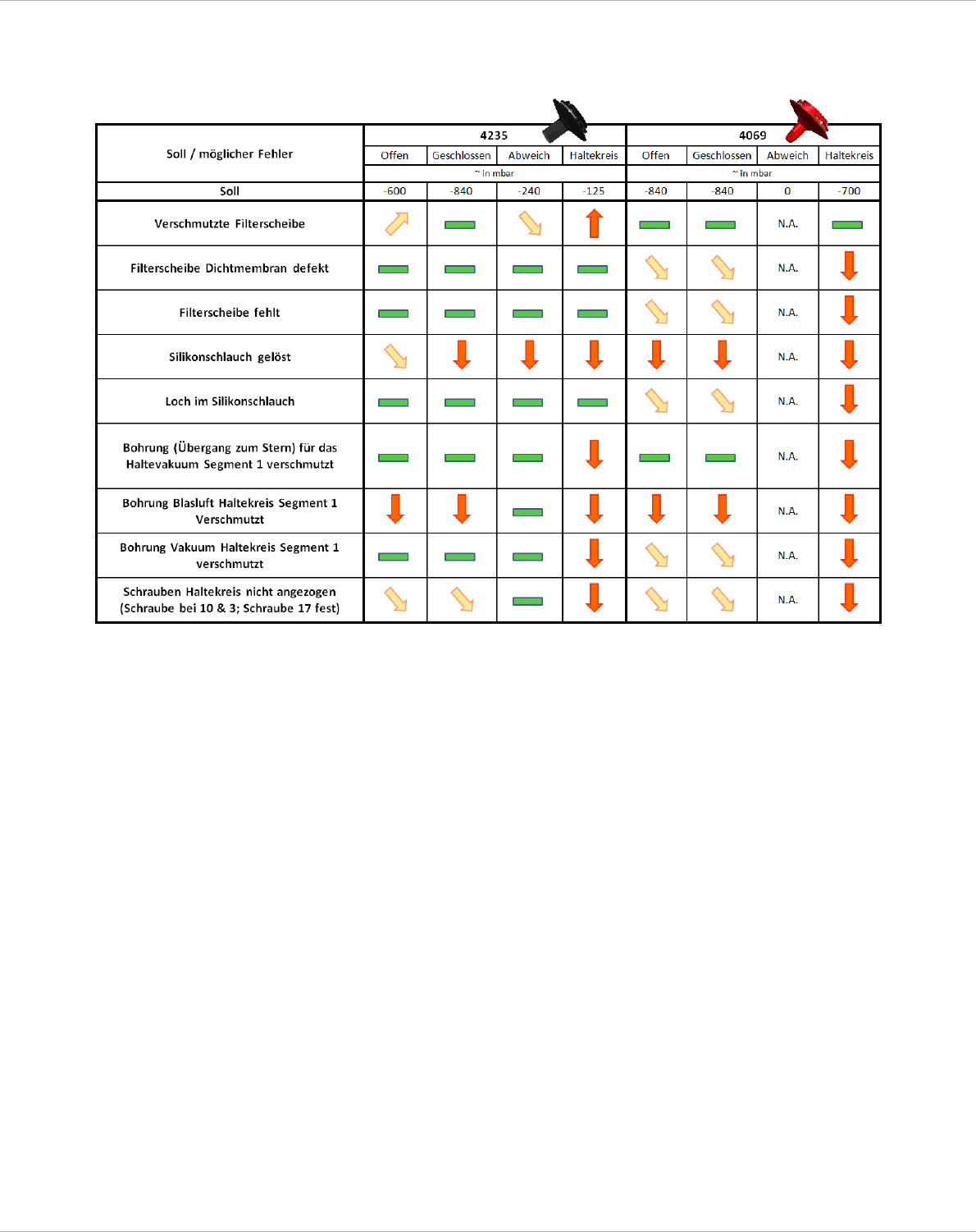 Serviceanlei tung Vakuumtest mit ges chlossenen Pi petten Seite 32 von 136 2.2.6 .2 Übersicht mögliche Ursachen und A uswi rkungen