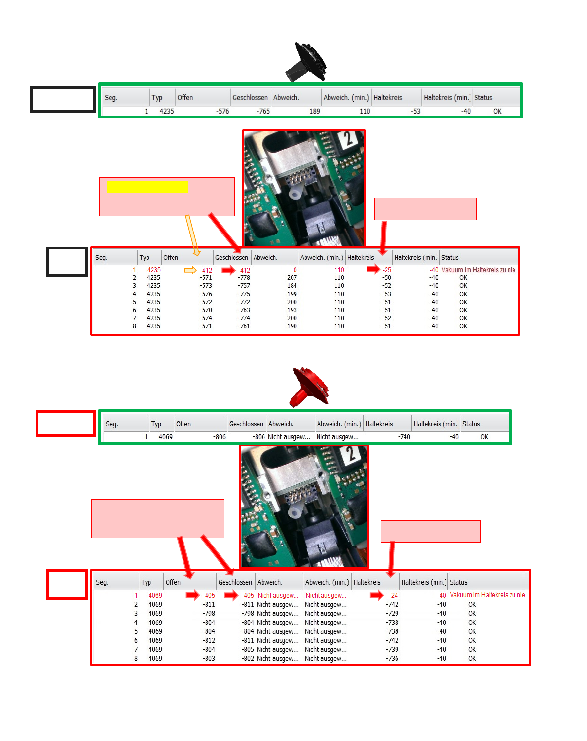 Serviceanlei tung Vakuumtest mit ges chlossenen Pi petten Seite 50 von 136 2.2.7 .3.5 Messung mit kleinem Loch i m Silikonschlauc h. a.) Mit Pipetten 4 23 5 b.) mit Pipett en 4 069 IST IST Keine Merkm ale Offen - W ert &…