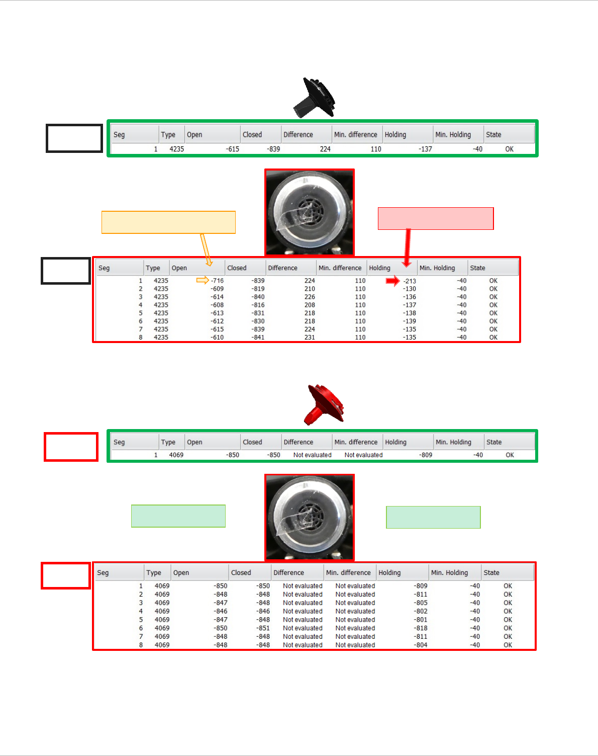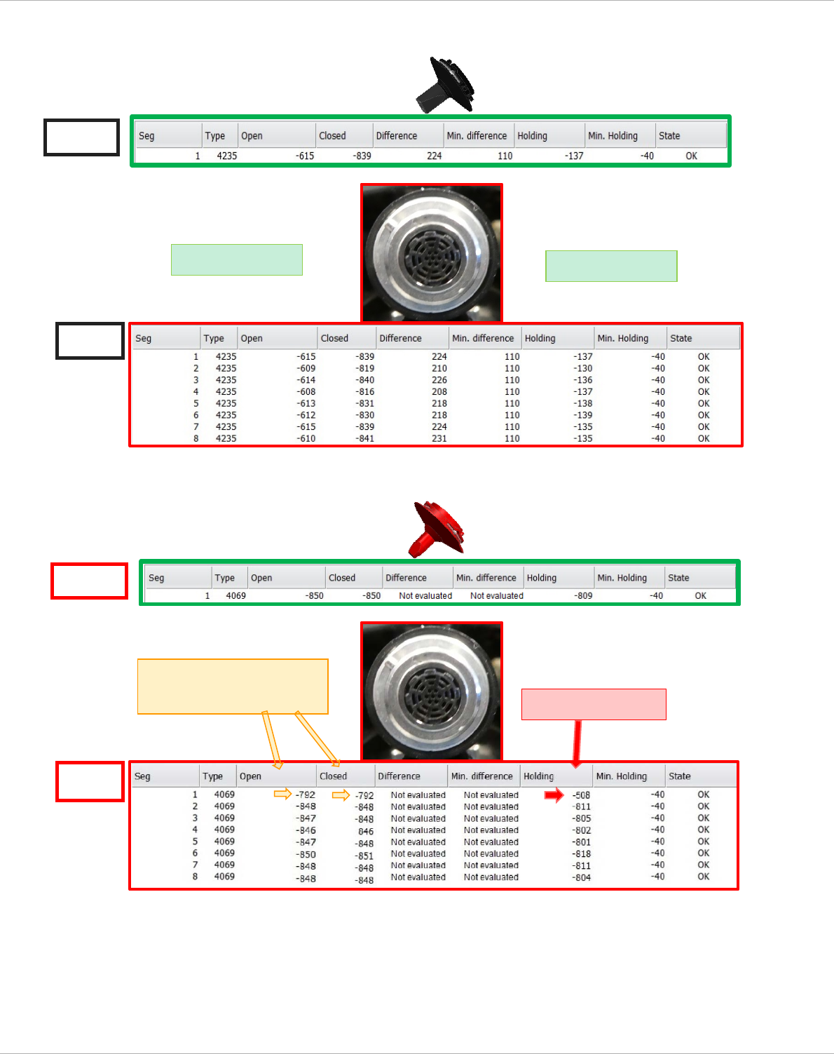 Service manual vacuum check with closed nozzles Page 99 fr om 136 4.2.6 .3.2 Measurement with sealing membrane defect . a.) W ith nozzl e 4 235 b.) W ith nozzl e 4069 AC T NOM AC T Open - val ue < Nom inal Closed - va…