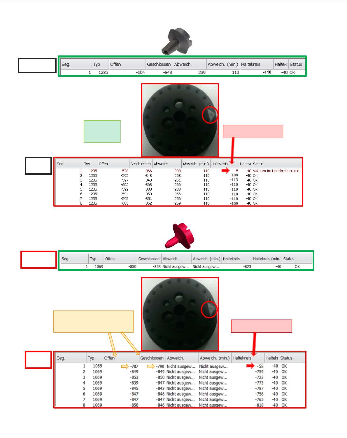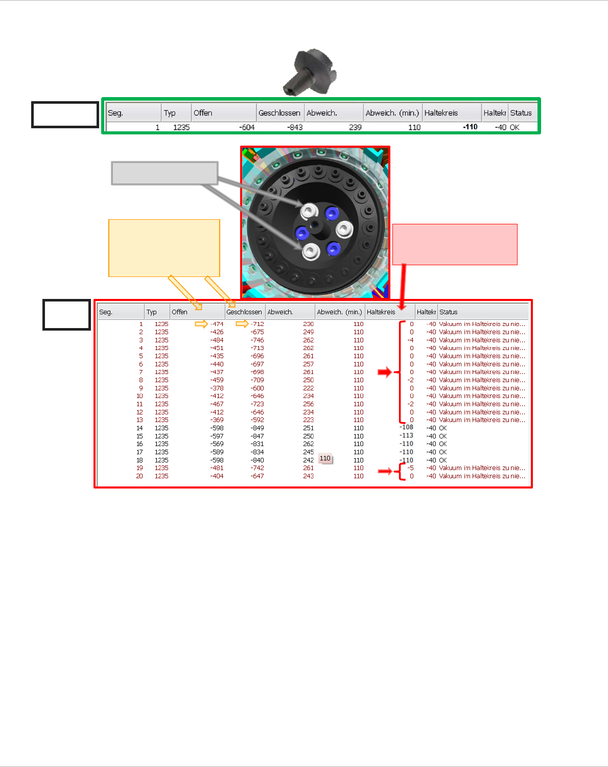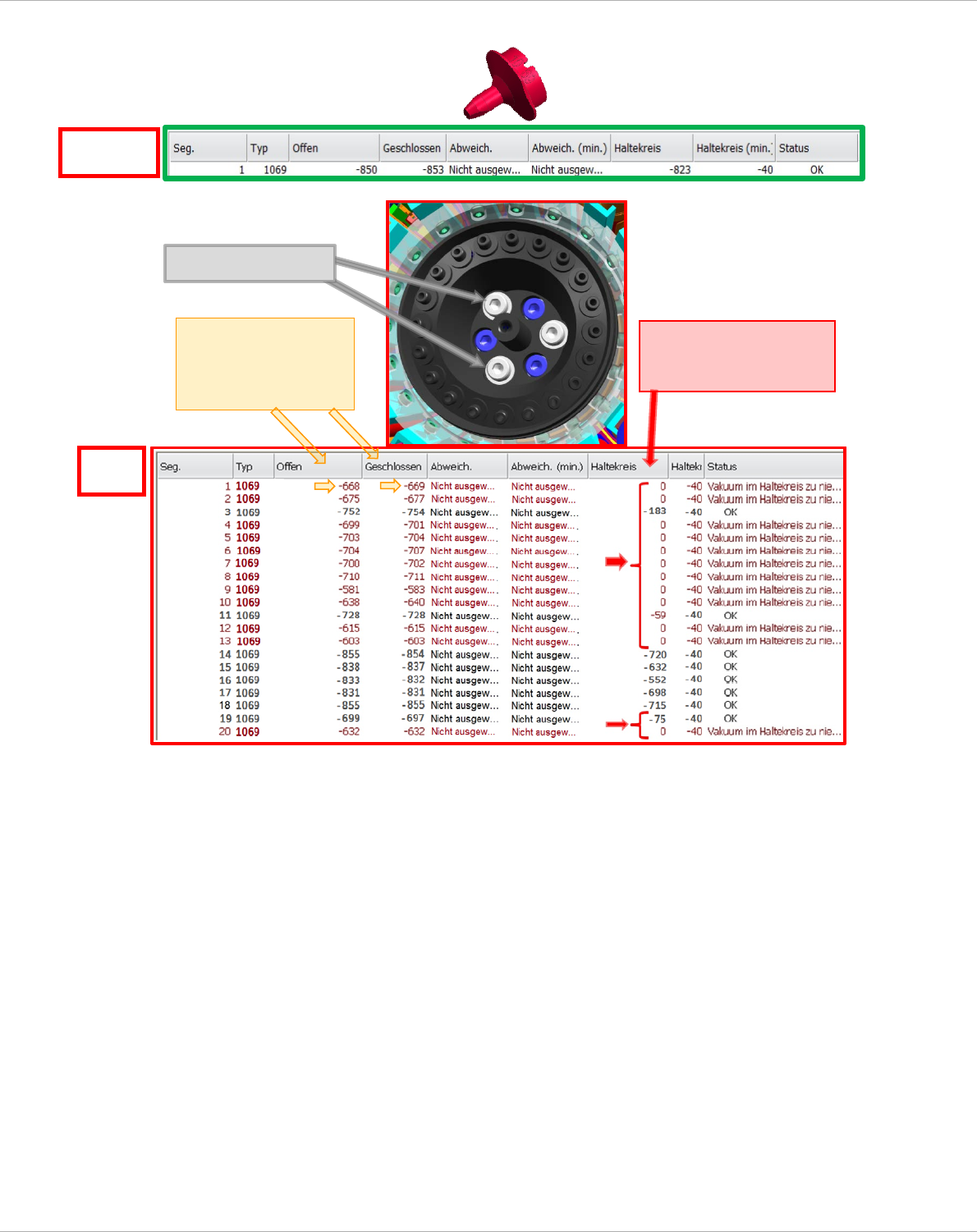 2.2.5.3.8 Bohrung Vakuum Haltekreis Segment 1 verschmutzt.