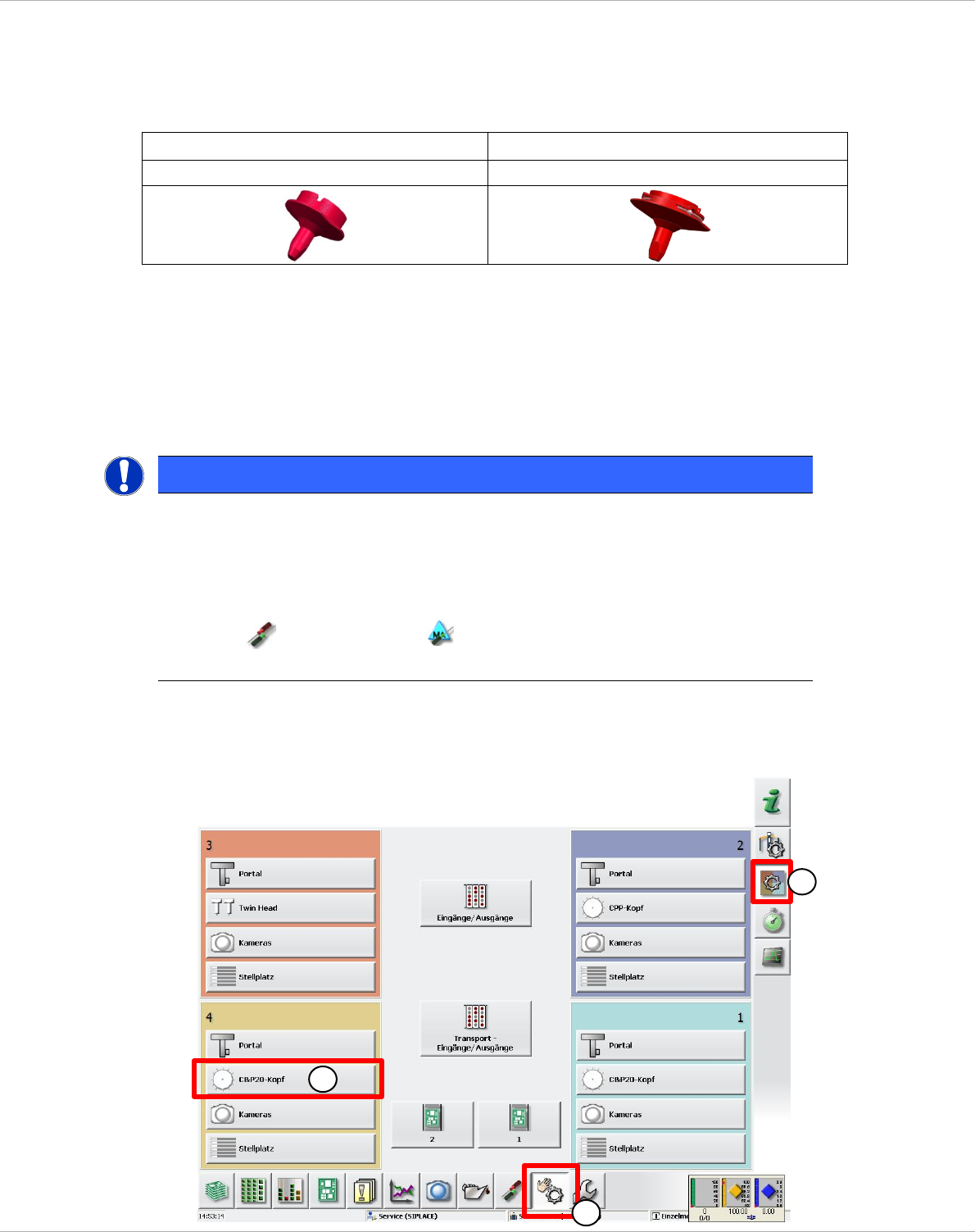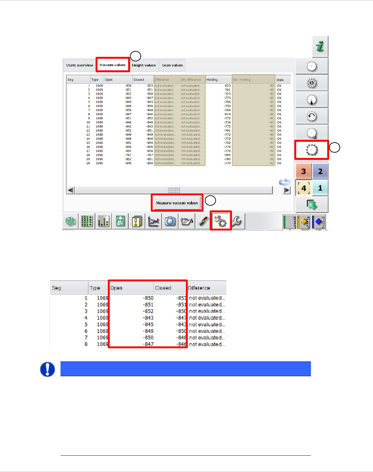• Choose Vacuum values, height values and scan values of the nozzles on the head (1).