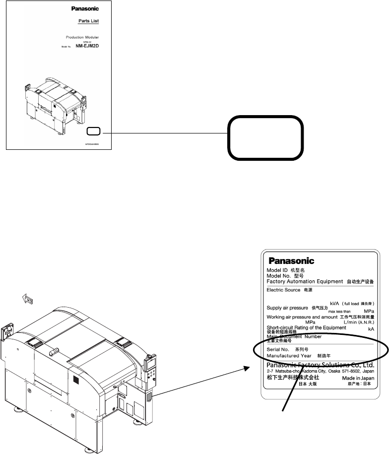 ■ 封面上贴有标示生产编号 (Serial No.) 的序列号标签。当您购买零部件时,请确认其编号是否一致与粘