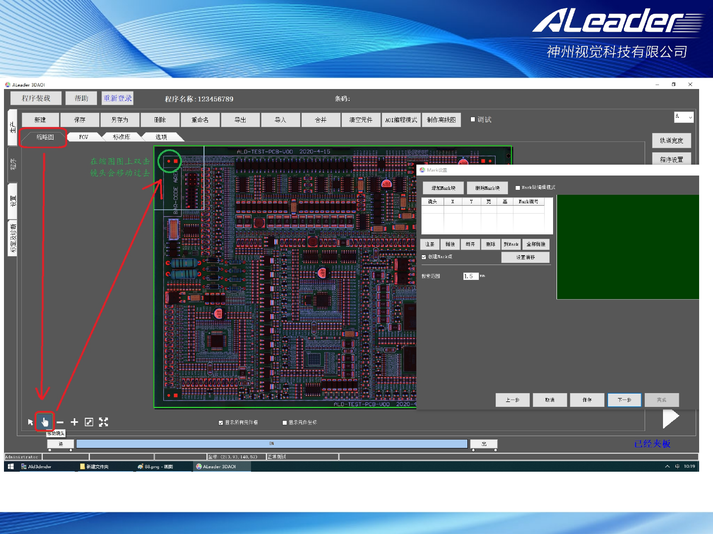 缩略图扫描完成之后,点击图中“缩略图”,并选择手指图标,在缩略图上双击MARK点位置,双击后镜头会移动到当前位置