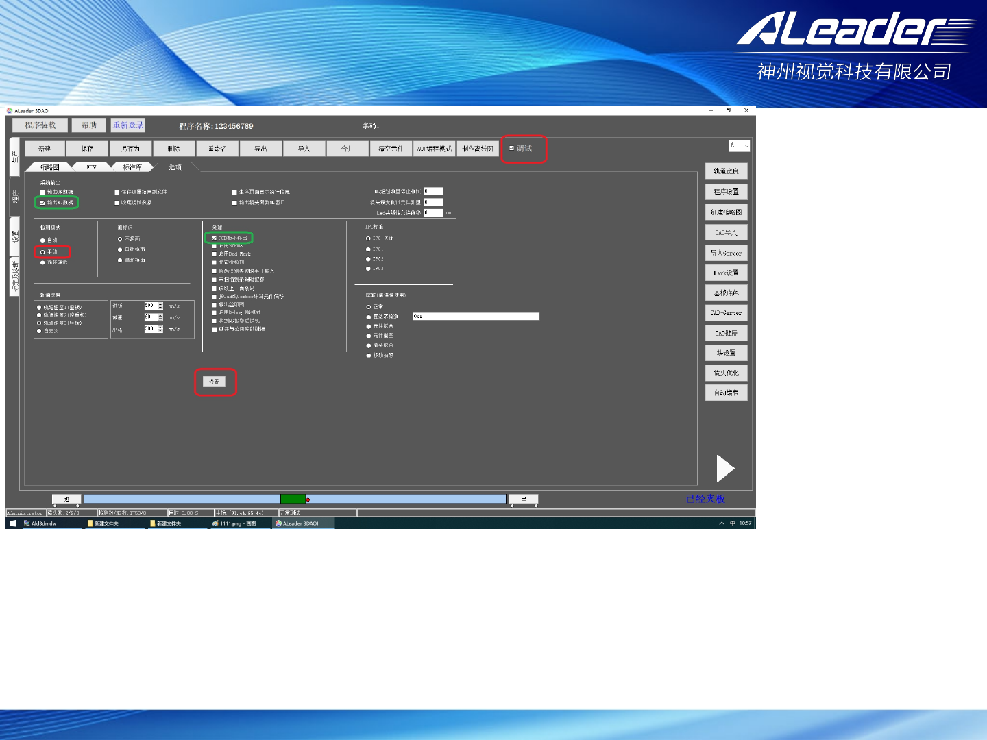 服务热线: 400-1189 -123 www .aleader .hk E-mail:aoi@aleader .hk Ø 调试设置: 勾选“调试 ” 并点击设置 即可 测板后会有 调试界面弹出 “输出NG数据 ” :可按 实际情况输 出结果或不 输出结果 “手动” :进板 后不会自动 测试,需手 动点击右下 角三角尖进 行测试 “PCB板不移 出”:勾选 后测完的PC B板不会移动 出来,根据 实际情况进 行选择 所有选项在勾 选或者…