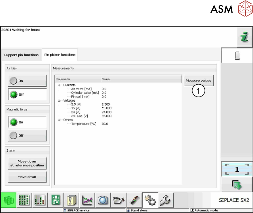 ► Click on the Measure values button (1) to update the list after you have made changes.