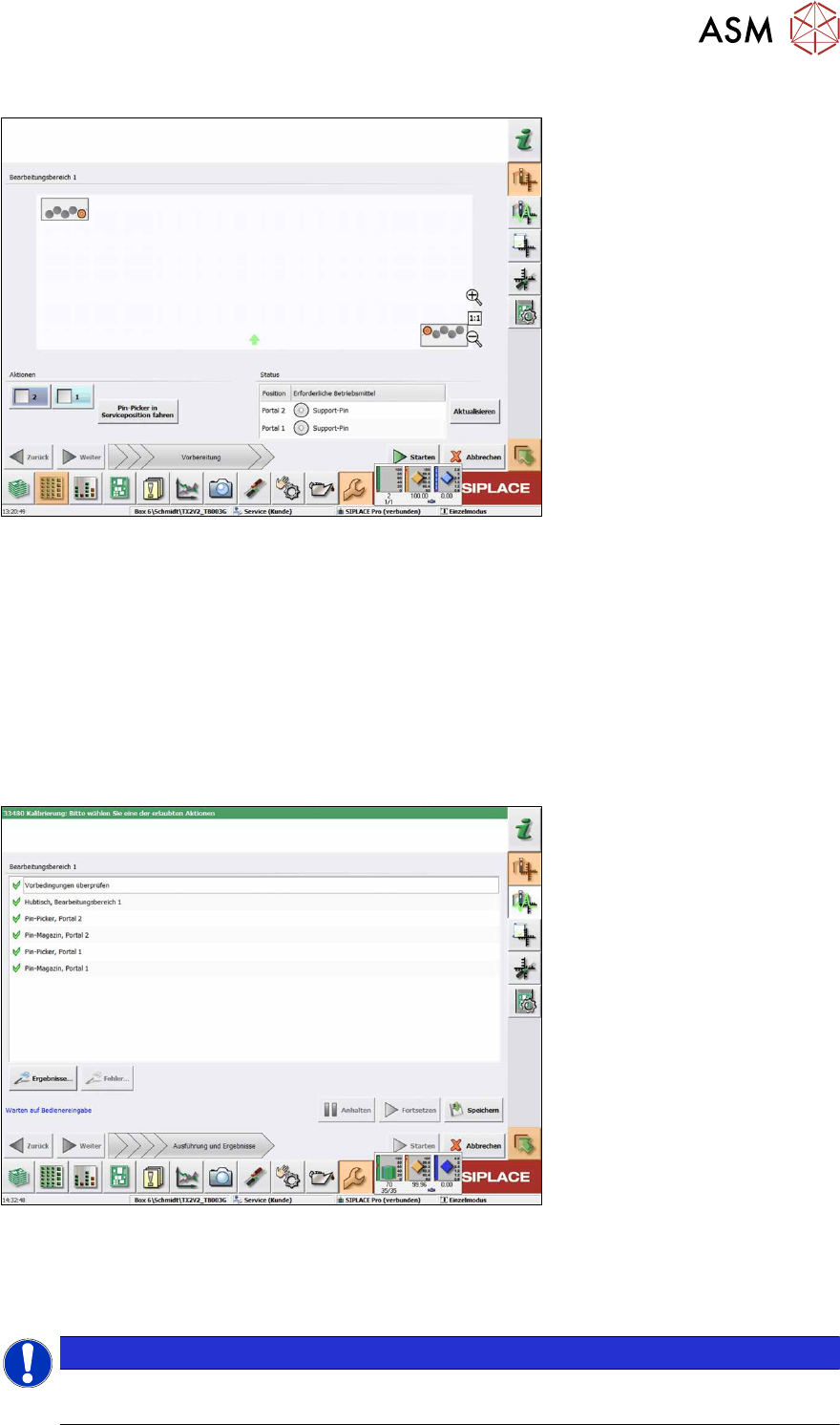 Danach läuft die Kalibrierung der Pin-Magazine weiter.
