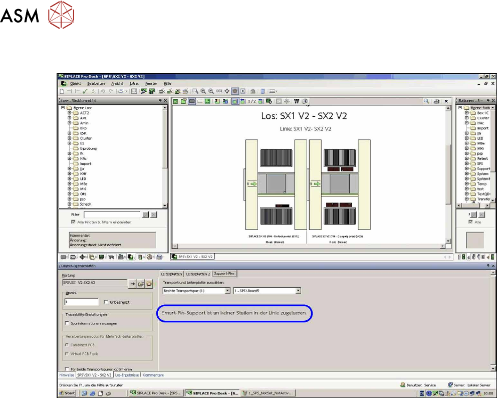 Abb.15: Los-Editor – Beispiel Smart Pin Support inaktiv (SX1/SX2)
