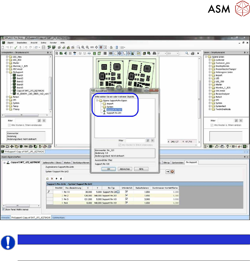 3 Smart Pin Support in SIPLACE Pro konfigurieren 3.2 Support-Pin-Positionen im Leiterplatten-Editor definieren 26 Use r M anu al / B edi enu ngs anl eit ung SI PLA CE X-S eri es S, SX1 /SX 2 V 2 Sma rt Pin Su ppo rt Ope …