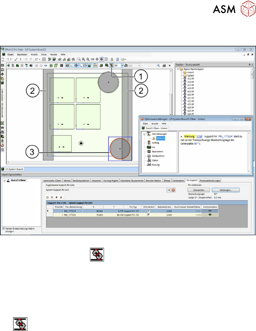 3 Smart Pin Support in SIPLACE Pro konfigurieren 3.2 Support-Pin-Positionen im Leiterplatten-Editor definieren 32 Use r M anu al / B edi enu ngs anl eit ung SI PLA CE X-S eri es S, SX1 /SX 2 V 2 Sma rt Pin Su ppo rt Ope …
