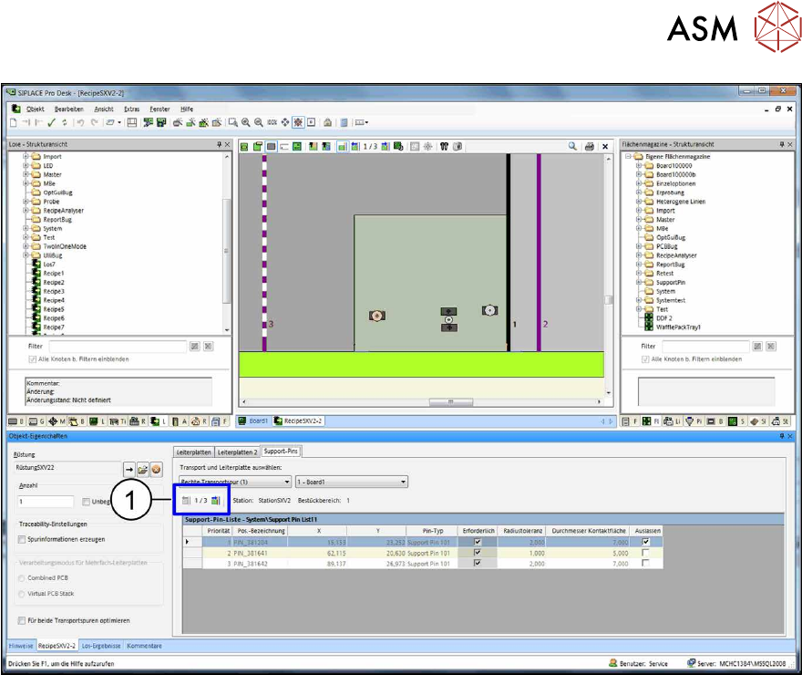 Abb.50: Los-Editor: Leiterplatte in Stopperposition 1