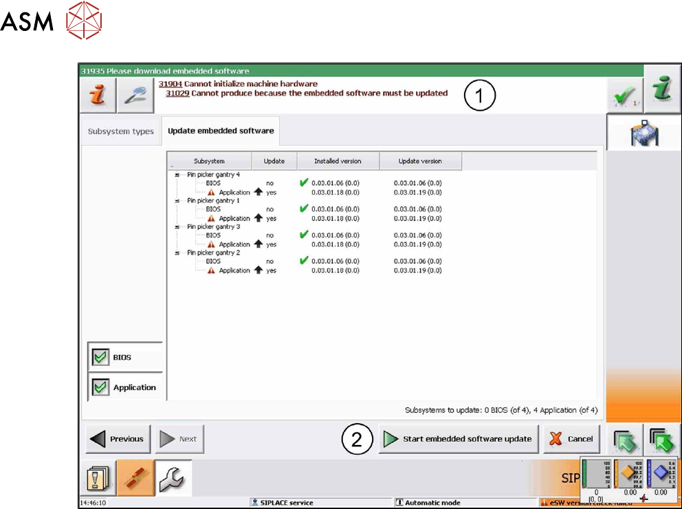 2 Starting Hardware and Software 68 User Manual / Bedienungsanleitung SIPLACE X-Series S, SX1/SX2 V2 Smart Pin Support Operation and Configura- tion 05/2019 Fig.7: Update embedded software ► In this case, click on the…