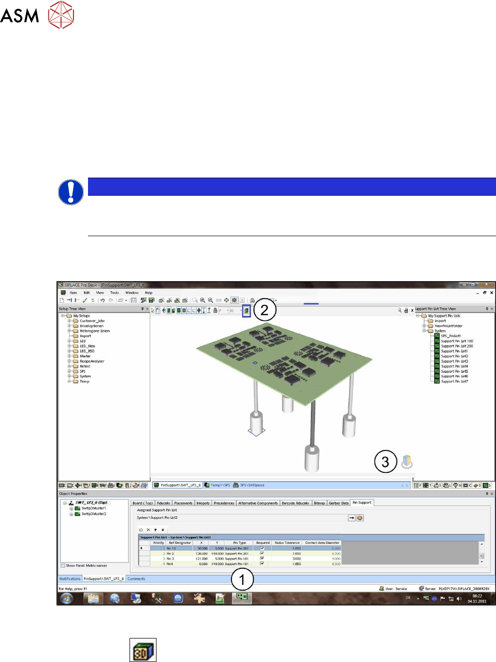 3 Configuring Smart Pin Support in SIPLACE Pro 3.2 Defining Support Pin Positions in the Board Editor 76 User Manual / Bedienungsanleitung SIPLACE X-Series S, SX1/SX2 V2 Smart Pin Support Operation and Configura- tion 05…