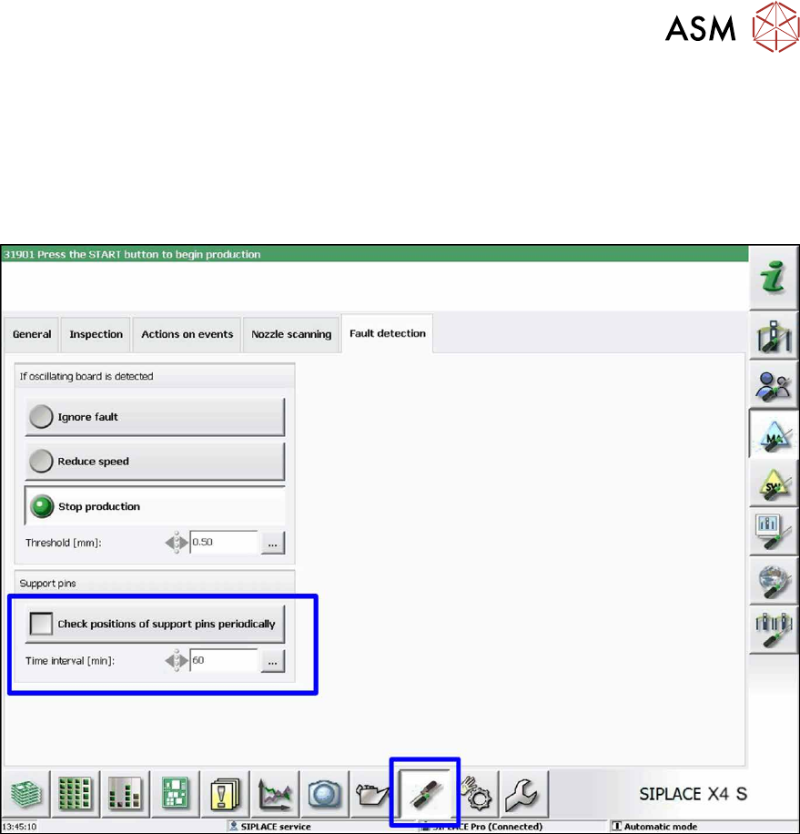 4 Working with Smart Pin Support at the Station 4.2 Checking the Support Pin Positions – Setting Time Interval User Manual / Bedienungsanleitung SIPLACE X-Series S, SX1/SX2 V2 Smart Pin Support Operation and Configura- t…