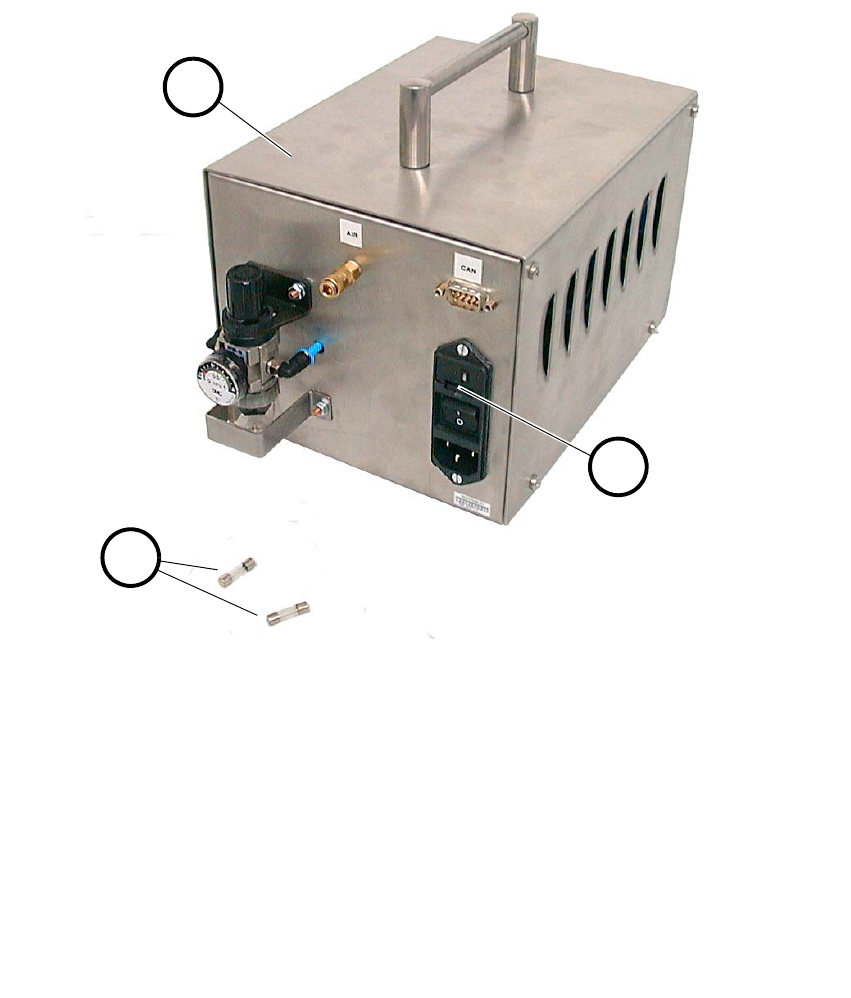 2 supplied 2.5 A medium time-lag fuses (for 115 V AC) Item no: 00304379-xx
