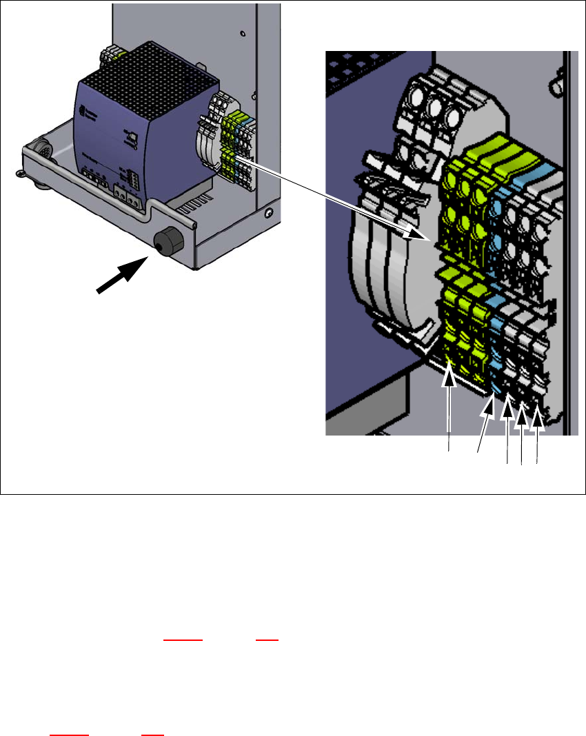 Fig. 4.2 - 4 Area morsetti per l'allacciamento del cavo di collegamento di rete