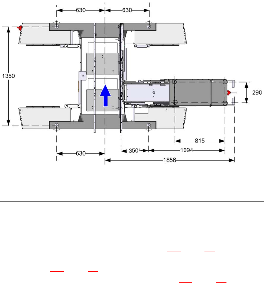Fig. 4.3 - 6 Distanza di rispetto dei piedi della macchina del convogliatore doppio CST in millimetri