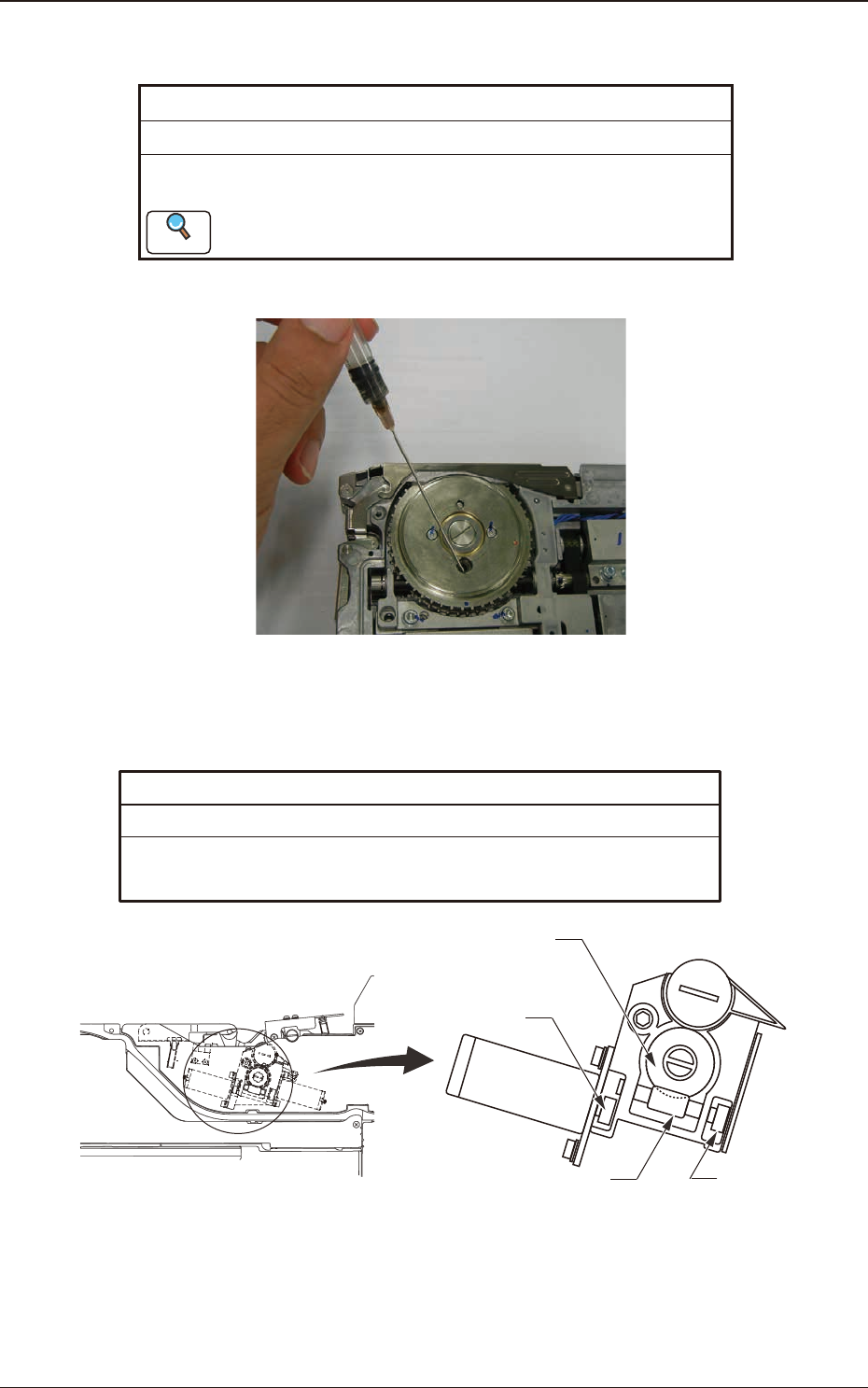 请拆卸机盖,用棉纱、竹探针擦去垃圾、灰尘后,用注油治具涂刷