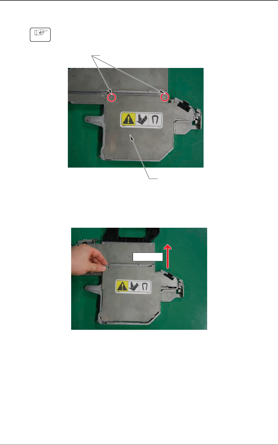 (2)抓住线路板箱盖的上侧,向箭头方向滑动拆卸。