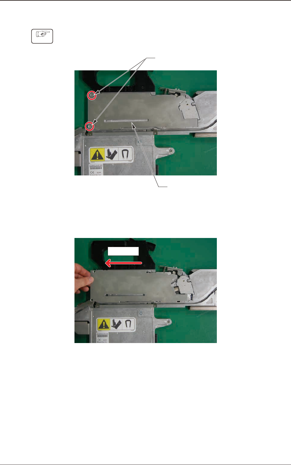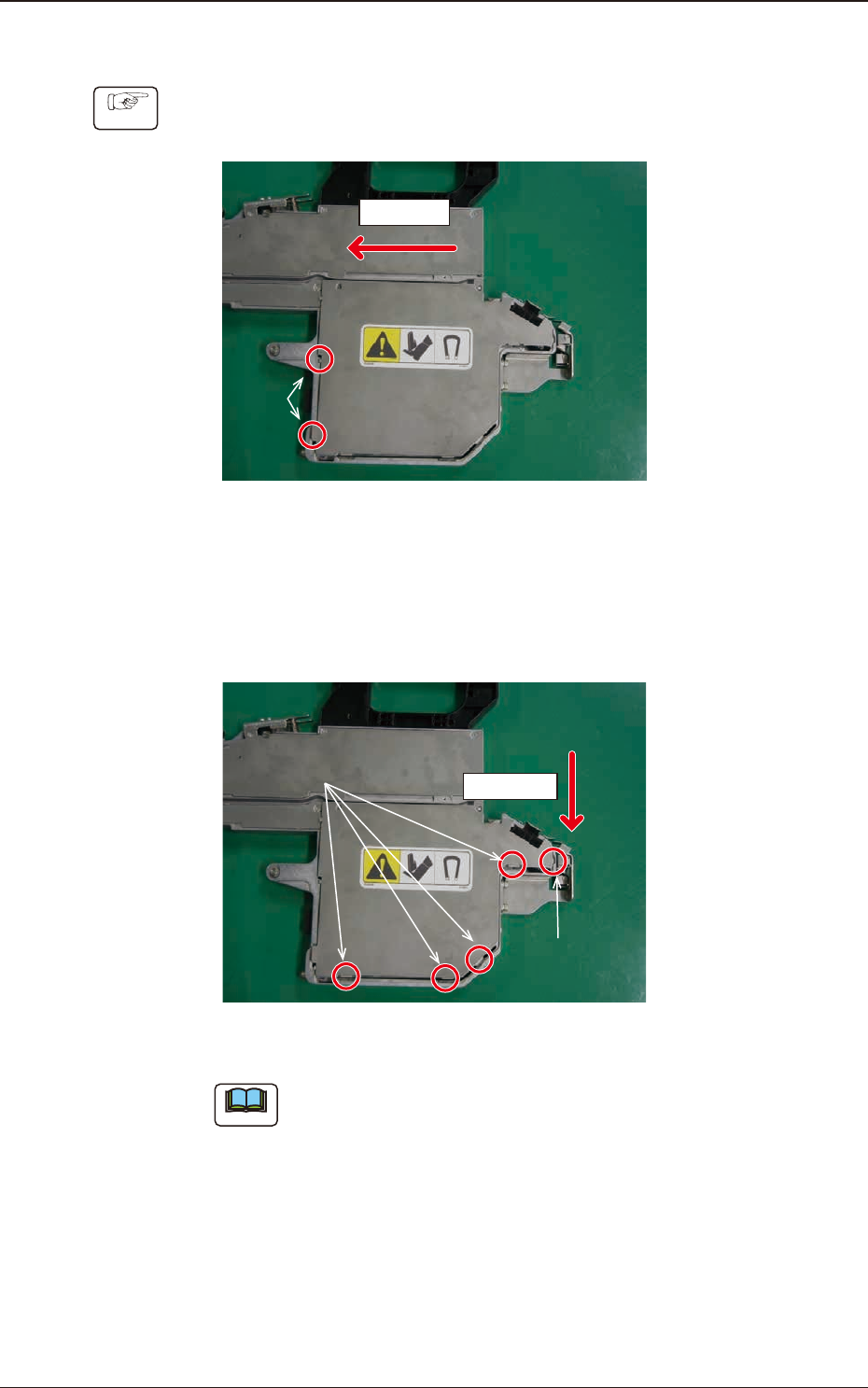 (1)抓住线路板箱盖的右侧,向箭头方向滑动插入 3 处爪。