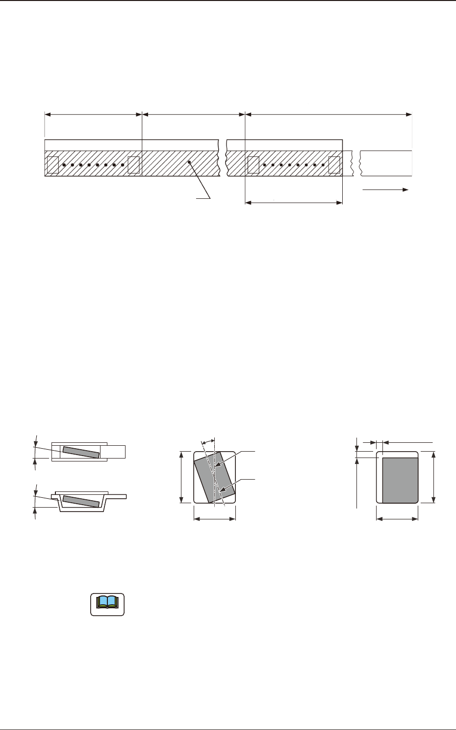 9.6 装料带及封口盖带的强度 装料带 可承受在料带拉出方向施加 10N(1.02kgf) 的拉力。 封口盖带 可承受在料带上施加 10N(1.02kgf) 的拉力。 9.7 封口盖带的剥离力 拉伸角度保持在 165 ° ~ 180 ° 、以 300mm/ 分 ±10mm/ 分的速度拽拉封口盖 带时,封口盖带的剥离力必须是 0.1 ~ 0.7N(10.2 ~ 71.4gf)。 方形穿孔装料编带…