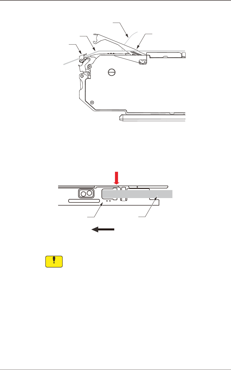 (4) 沿着沟槽安装料带。 料带 Fig.B5 Notice (a) 请剥下固定封口盖带的粘性带后,安装料带。 (b) 先将料带穿过连接处检出单元的料带引导槽,再沿着沟槽安装 料带。 Reference 关于将料带通过连接处检出单元的方法请参照 “ 2.5连接处 检出单元 ” 。 1209-001 2.1纸带及压纹带的安装步骤 OM-1744 2-3