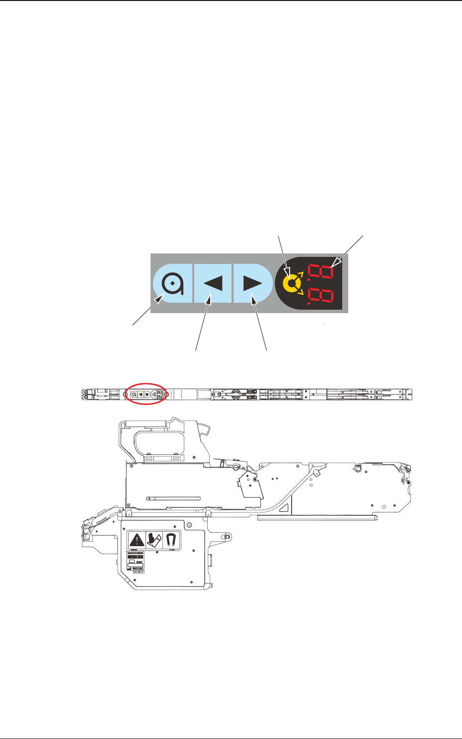 4. 操作台 在操作台可以进行以下显示以及操作。 • 设定间距的显示 • 传感器等的 I/O 状态显示 • 选择通道的显示 • 适用通道选择操作 • 料带的传送操作 • 传送间距的设定 • 异常编码的显示 • 料带的返回操作 • 接合指南的显示 • 封口盖带的上卷操作 4.1 操作台各部的名称和功能 操作台上集中配置有带式送料器的动作按钮和显示部。 操作台 数字显示部 通道选择按钮 传送按钮…