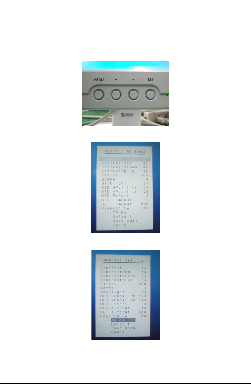 3) Press the [-] button to select [TP Calib] on the “Monitor Setting” screen.