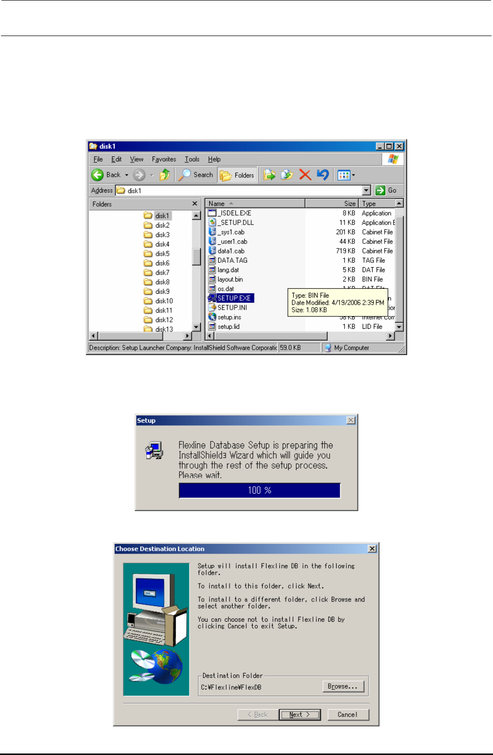 3) Select “Setup.exe” from the FlexlineDB installation disk prepared in step 1).