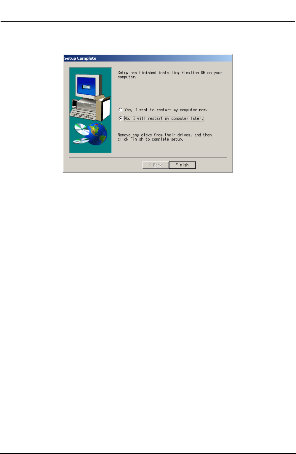 Check on [No, I will restart my computer later.] and click the [Finish] button.
