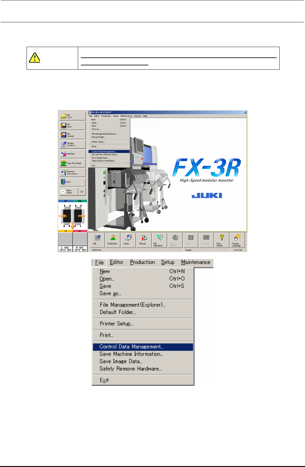 Select [File] and [Control Date Management...] to restore the control data in the SSD.