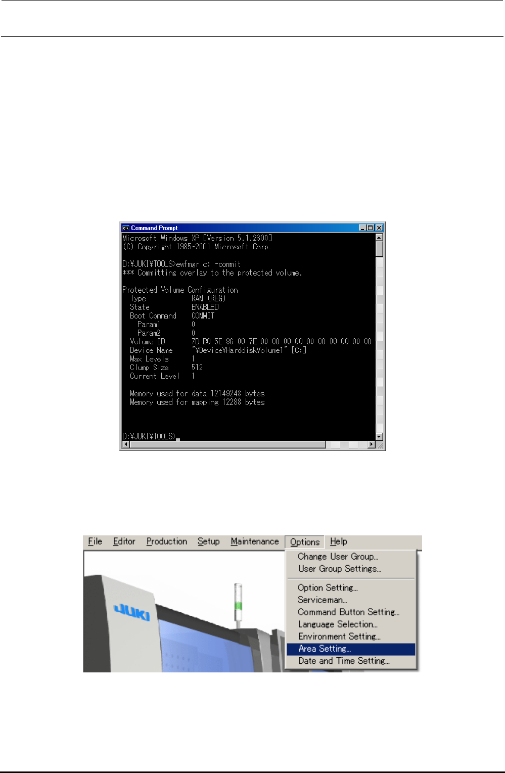 3) In the status that the system is started up, select [Area Setting…] from the [Options] menu.