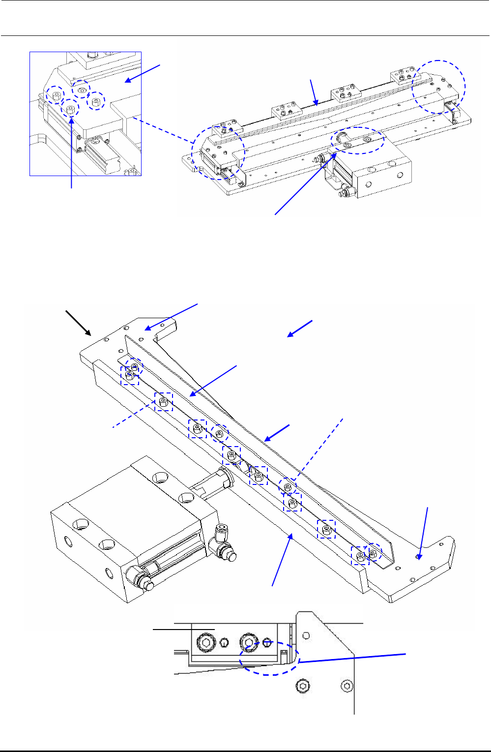 4) Remove the screws mounting the movable cutter blade on the linear guide and the screws