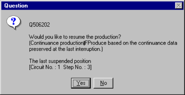 the “Question” dialog box, which asks you whether to delete a continuous production