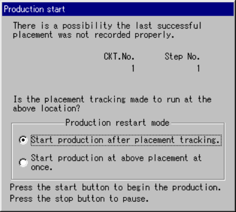 After tracking operation, the “Production start” dialog box appears on the screen.