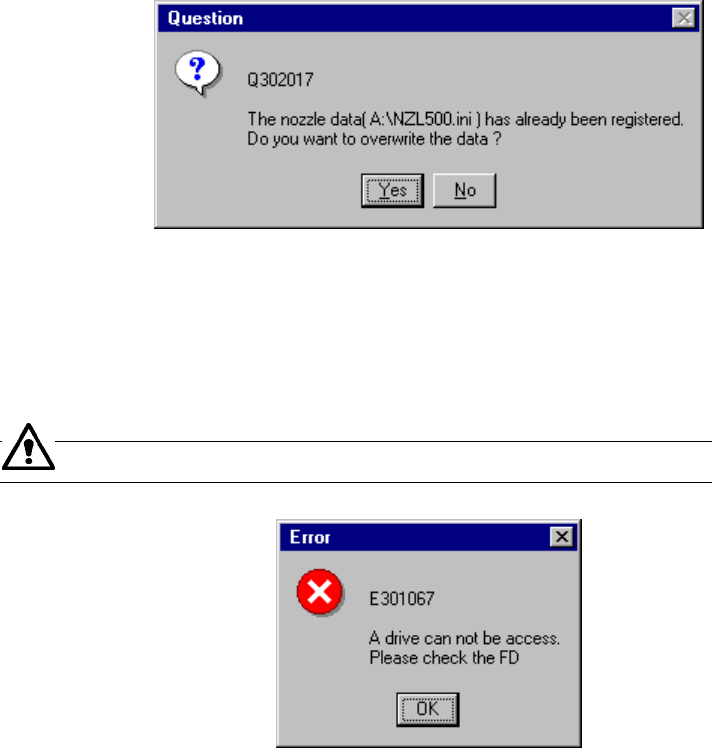 If the specified nozzle information is already registered, the dialog box that asks you