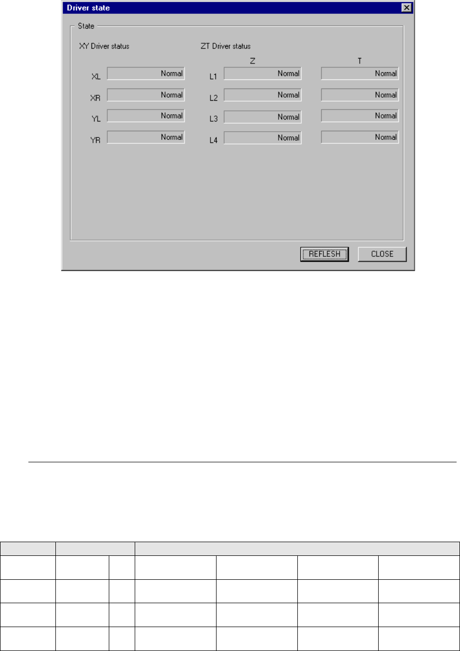 from the [Ctrl] command, the following “Driver state” dialog box appears on the