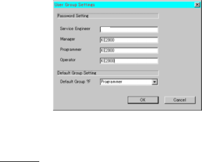 The following dialog box allows you to change each password and set the default user